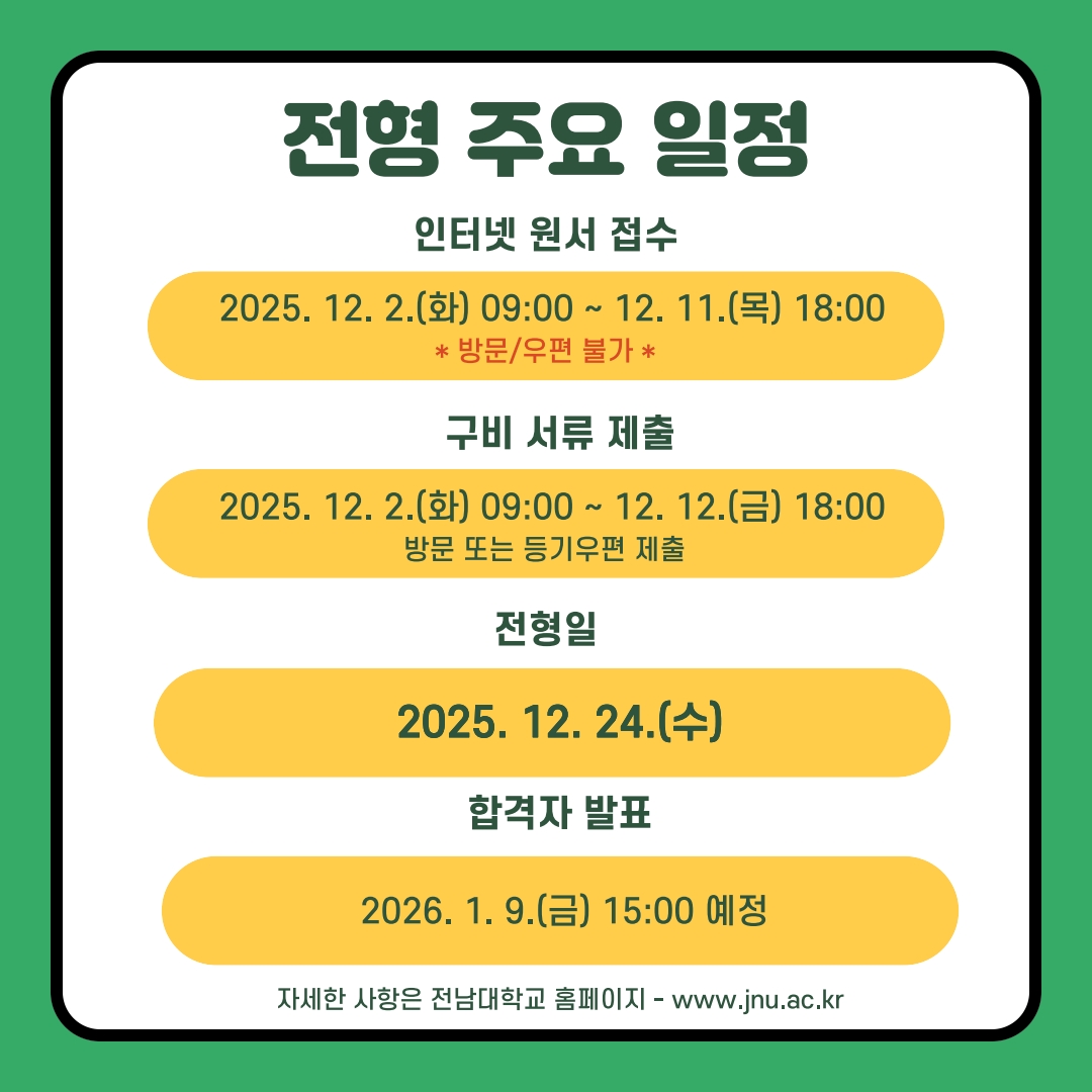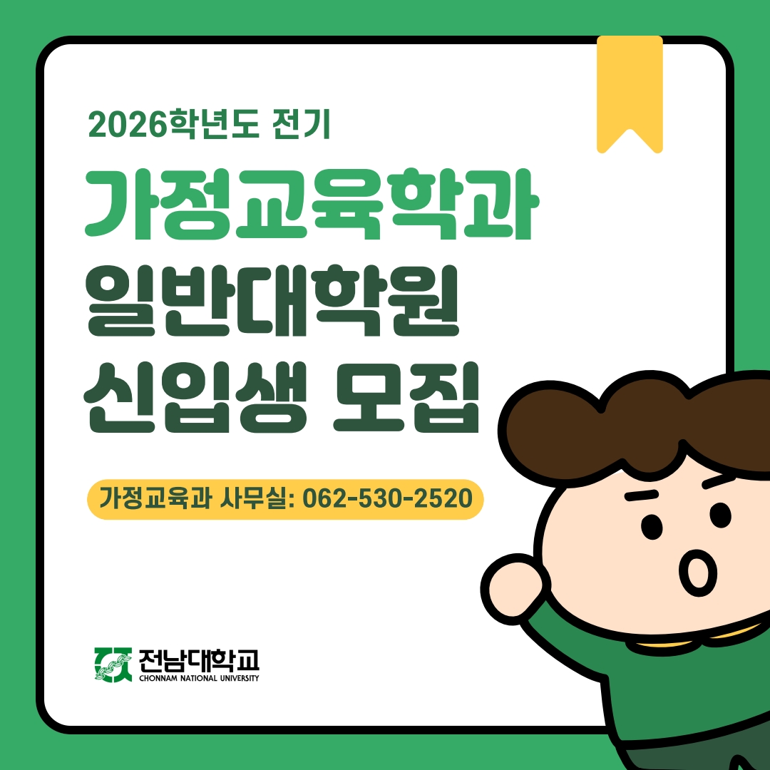 2026학년도 전기(2차) 전남대학교 일반대학원 가정교육학과 모집 일정 안내