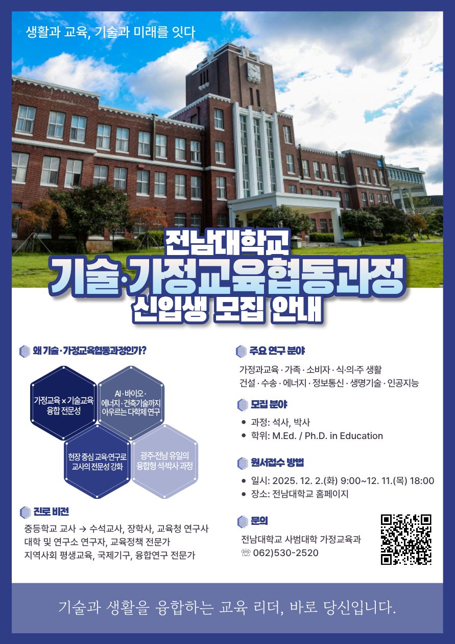 2026학년도 전기(2차) 전남대학교 일반대학원 기술·가정교육협동과정 모집 일정 안내