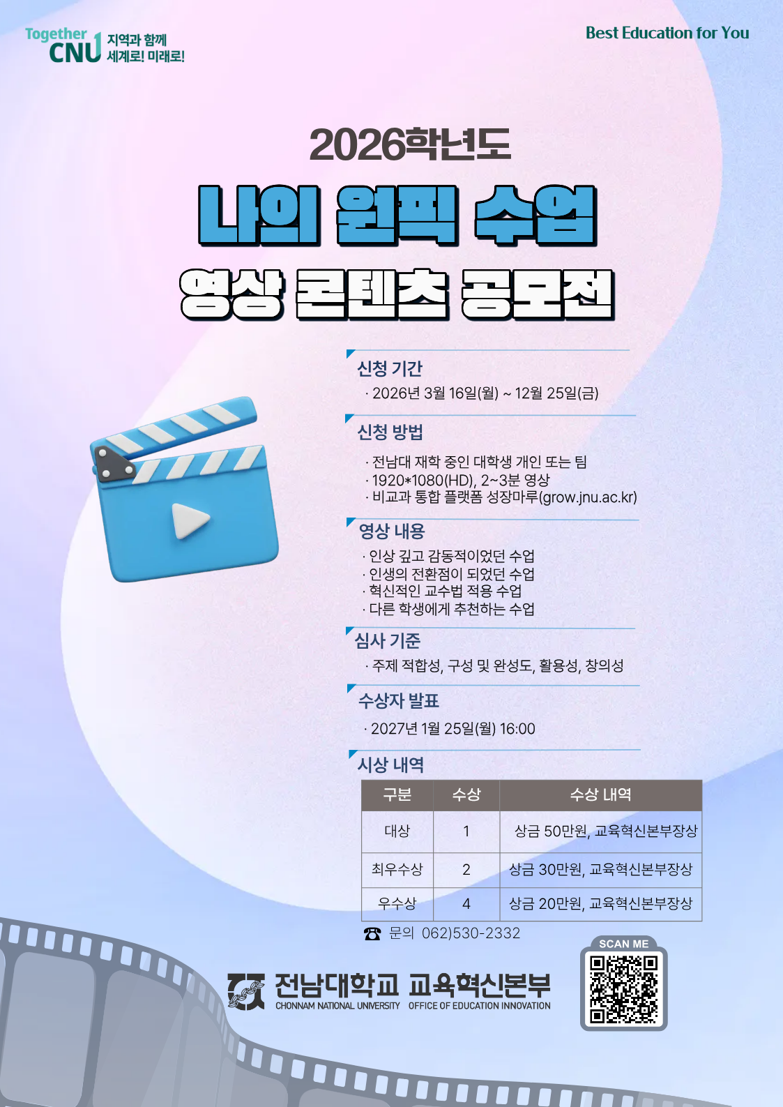 2026학년도 나의 원픽 수업 영상 콘텐츠 공모전 안내